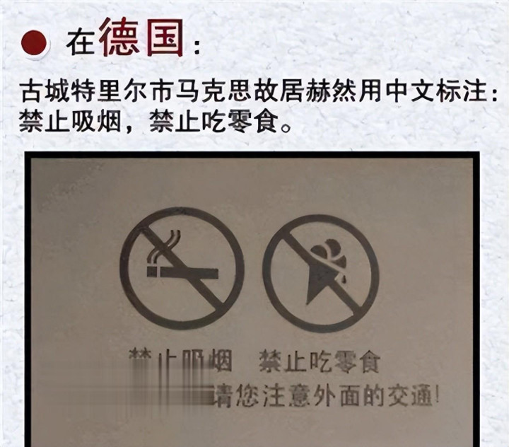 面对质疑,德国方面给出的解释是 “中国游客数量多,用大字提醒更方便”,可这个说法根本站不住脚。