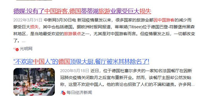 德国部分景区因歧视性标识,中国游客满意度下降,旅游收入出现明显损失。