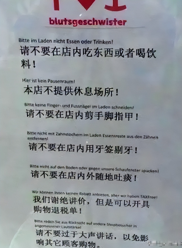 中国人性格热情,交流时声音相对洪亮,喜欢热闹的氛围,这和欧洲人注重安静、强调个人空间的习惯存在差异,这本是正常的文化不同,却被部分商家当成 “不文明”,用标语进行指责。